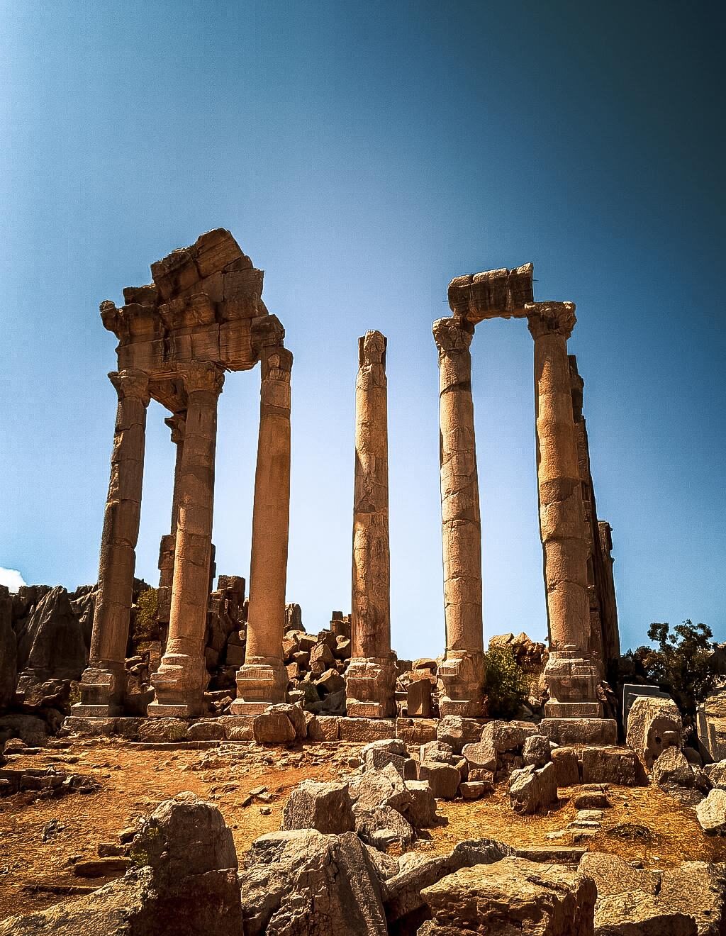 The site forms part of an extensive Roman complex and is notable for its monumental temple architecture set within a dramatic mountainous landscape. Among its key features are a large temple dedicated to Zeus Beelgalasos, a smaller sanctuary associated with a local deity, and a tower structure later remodeled under the reign of Emperor Claudius in 43–44 AD.