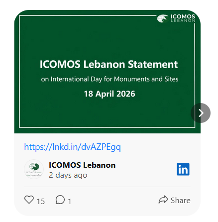 For inquiries, please contact us at icomoslebanon@icomos.org for any furtherinformation or collaboration opportunities.
